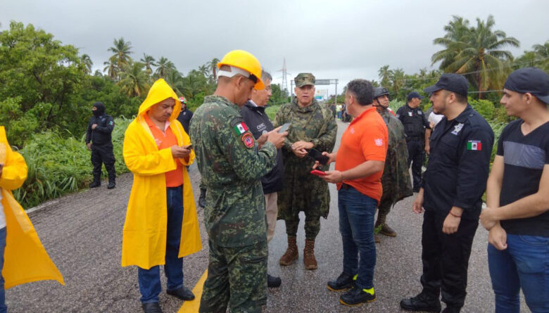 También, con apoyo de un helicóptero, elementos de la Marina lograron el rescate de 2 personas, sanas y salvas, que quedaron atrapadas en un árbol ante el crecimiento del caudal del río Tecpan.